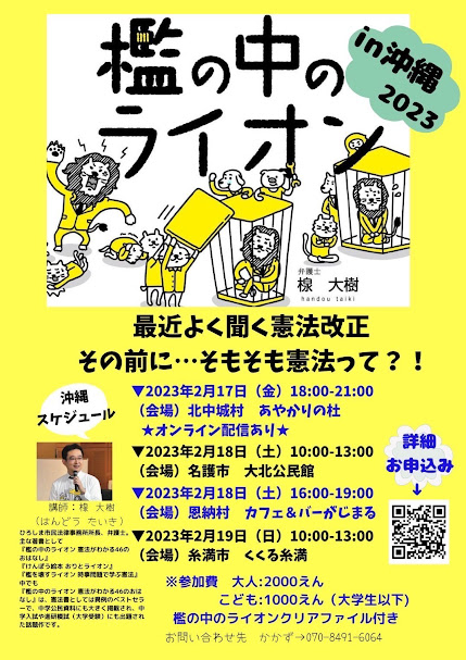3月4日(土) 楾大樹弁護士の憲法カフェ『檻の中のライオン』in 小牧🐓