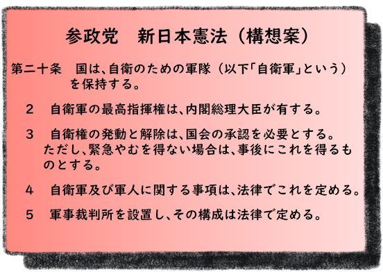 その上で参政党の憲法草案、第二十条は~というと…えっ、軍隊!?
